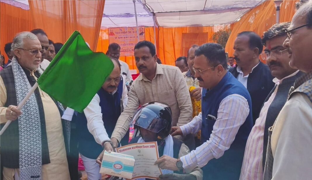 शाहजहाँपुर: मुख्यमंत्री योगी आदित्यनाथ (Chief Minister Yogi Adityanath) की मंशा के अनुरूप दिव्यांगजन सशक्तिकरण विभाग की ओर से शुक्रवार को एक गरिमामय कार्यक्रम में दिव्यांगजनों को कृत्रिम सहायक उपकरणों का वितरण किया गया। कार्यक्रम के मुख्य अतिथि उत्तर प्रदेश सरकार के कैबिनेट मंत्री सुरेश कुमार खन्ना (Minister Suresh Khanna) रहे। उनके साथ ददरौल विधायक अरविंद कुमार सिंह, कटरा विधायक वीर विक्रम सिंह प्रिंस, तिलहर विधायक सलोना कुशवाहा, सहकारी बैंक अध्यक्ष डी.पी.एस. राठौर, विधान परिषद सदस्य सुधीर गुप्ता, मुख्य विकास अधिकारी अपराजिता सिंह सिनसिनवार, पूर्व जिला पंचायत अध्यक्ष अजय प्रताप सिंह यादव, परियोजना निदेशक जिला ग्राम विकास अभिकरण अवधेश राम, जिला कृषि रक्षा अधिकारी सहित जिला दिव्यांगजन सशक्तिकरण अधिकारी संजय कुमार उपस्थित रहे।