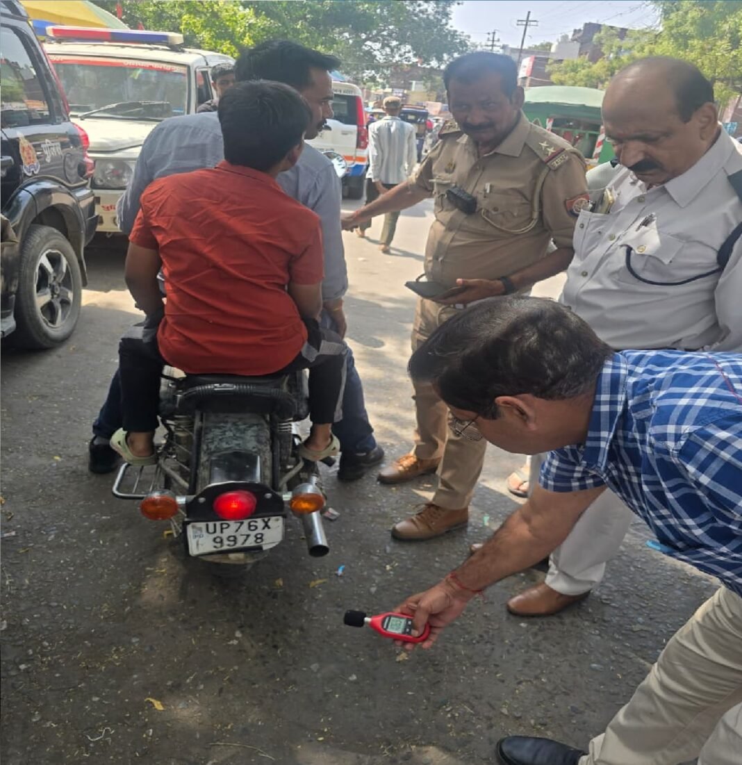 अभियान के दौरान टीम ने कुल 54 वाहनों की जांच की, जिसमें साइलेंसर और ध्वनि प्रदूषण के मानकों की विशेष रूप से जांच की गई। इस दौरान एक बुलेट मोटरसाइकिल मोडिफाइड साइलेंसर के साथ पकड़ी गई, जो निर्धारित मानकों का उल्लंघन कर रही थी। जांच में यह भी सामने आया कि उक्त वाहन का बीमा वर्ष 2020 से समाप्त हो चुका था। इस पर सख्त कार्रवाई करते हुए संबंधित वाहन का चालान किया गया और उस पर 17 हजार रुपये का जुर्माना लगाया गया।