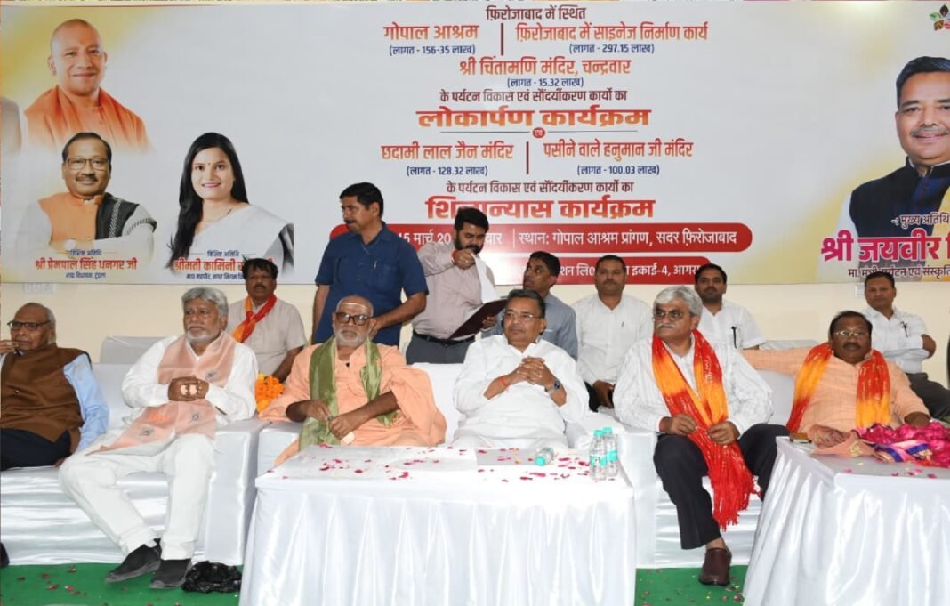 फिरोजाबाद। प्रदेश के पर्यटन मंत्री ने जनपद के सांस्कृतिक स्थलों के कायाकल्प हेतु 697.17 लाख रुपए की विभिन्न पर्यटन विकास परियोजनाओं का लोकार्पण एवं शिलान्यास गोपाल आश्रम परिसर में किया। विकास कार्य होने से जिले में पर्यटनों को बढ़ावा मिलेगा।