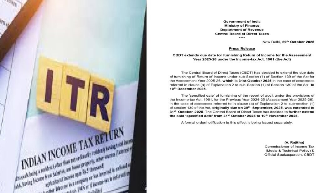 CBDT ने ऑडिट रिपोर्ट जमा करने की अंतिम तिथि भी बढ़ाई है। पहले यह 30 सितंबर से बढ़ाकर 31 अक्तूबर की गई थी, जिसे अब आगे बढ़ाकर 10 नवंबर 2025 कर दिया गया है। इस फैसले से ऑडिट करवाने वाले टैक्सपेयर्स को अपने वित्तीय दस्तावेज तैयार करने, रिपोर्टिंग को अंतिम रूप देने और समय पर रिटर्न दाखिल करने में पर्याप्त समय मिलेगा।