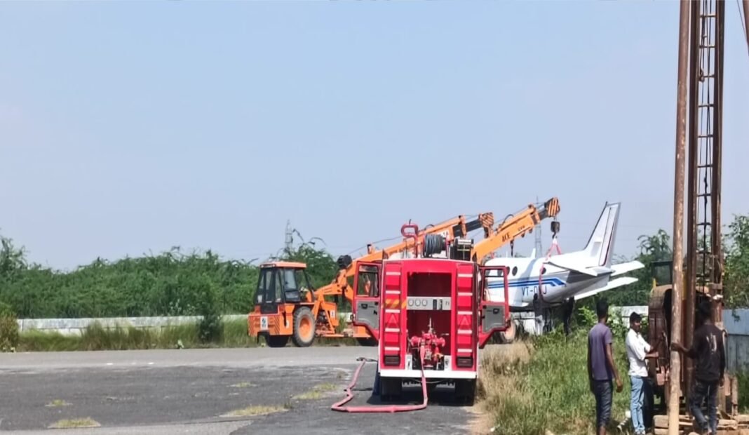 मोहम्मदाबाद, फर्रुखाबाद: राजकीय हवाई पट्टी (state airstrip) पर छटिग्रस्त हुआ विमान सुबह 9:00 बजे से दोपहर 2:30 बजे तक क्रेन (crane) की सहायता से घटनास्थल से हटाकर सुरक्षित स्थान पर खड़ा किया गया। इस कार्य में तकनीकी टीम ने अत्यधिक सावधानी बरतते हुए विमान को किसी भी तरह के नुकसान से बचाया।