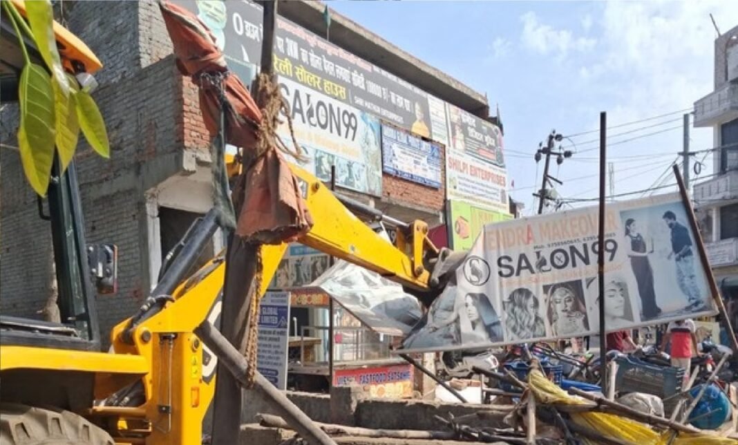 नगर निगम ने अतिक्रमण हटाने के लिए बुलडोजर से अभियान चलाया