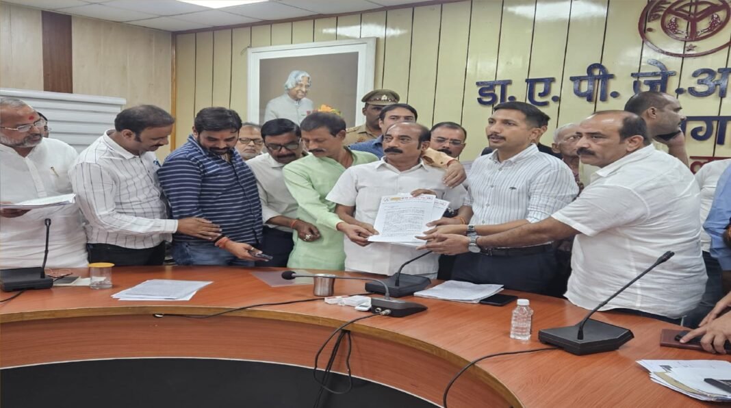 आदर्श व्यापार मंडल के पदाधिकारियों ने जिलाधिकारी को सौंपा ज्ञापन