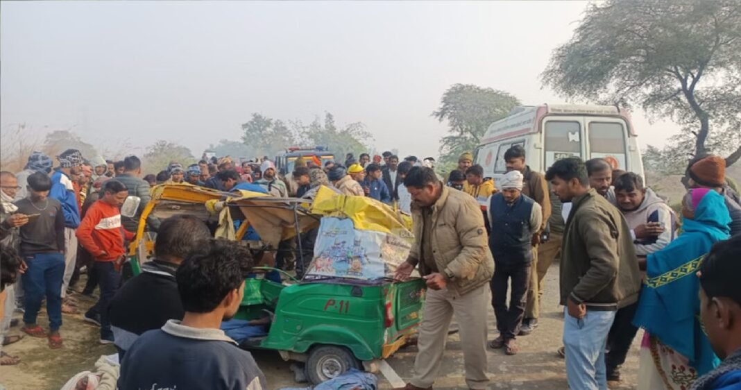 उन्नाव: यूपी के उन्नाव (Unnao) में शनिवार सुबह अजगैन थाना क्षेत्र के मकुर गांव में एक पेट्रोल पंप (petrol pump) के पास एक तेज रफ्तार डंपर और ऑटो-रिक्शा की आमने-सामने टक्कर हो गई, जिसमें तीन लोगों की मौत हो गई। ऑटो में तीन लोग सवार थे, जबकि चालक समेत चार अन्य गंभीर रूप से घायल (injured) हो गए। प्रत्यक्षदर्शियों के अनुसार, डंपर बहुत तेज गति से चल रहा था और अचानक अनियंत्रित होकर सामने से आ रहे ऑटो से टकरा गया।
