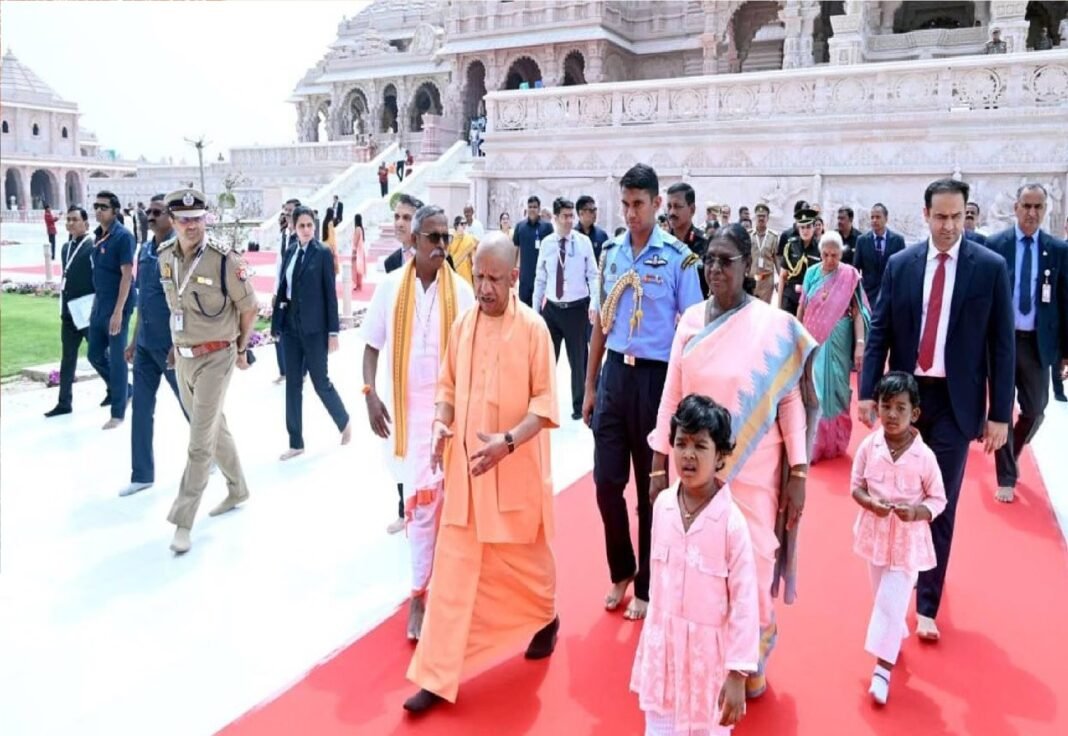 द्रौपदी मुर्मू के अयोध्या दौरे को लेकर बृहस्पतिवार को पूरी रामनगरी अभूतपूर्व सुरक्षा व्यवस्था के बीच रही। करीब सात घंटे तक नभ, थल और जल—तीनों स्तरों पर हाई अलर्ट लागू रहा। शहर के प्रमुख इलाकों में बहुस्तरीय सुरक्षा घेरा बनाया गया, जिससे बिना अनुमति कोई भी गतिविधि संभव नहीं हो सकी।