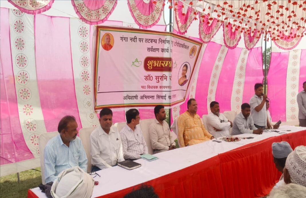 शमशाबाद, फर्रुखाबाद। क्षेत्र के कटरी इलाकों को बाढ़ से बचाने के उद्देश्य से गंगा नदी पर प्रस्तावित तटबंध निर्माण के लिए टोपोग्राफी सर्वेक्षण कार्य का शुभारंभ किया गया। ढाईघाट शमशाबाद स्थित कासिमपुर तराई में आयोजित कार्यक्रम के दौरान इस सर्वेक्षण कार्य की शुरुआत विधायक सुरभि के पति डॉ. अजीत गंगवार ने की।