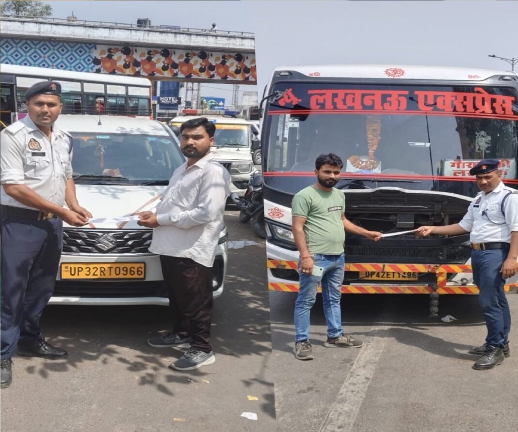 लखनऊ में ट्रैफिक पुलिस सख्त, कमता चौराहे पर डग्गामार वाहनों के साथ बसें भी सीज