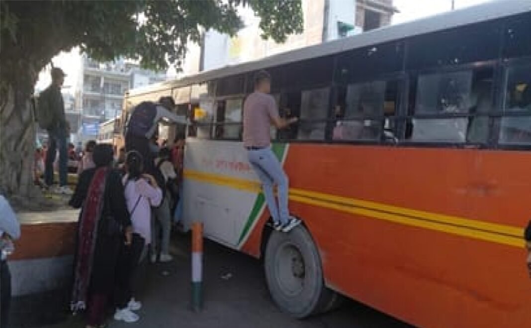 शाम करीब सवा पांच बजे परीक्षा केंद्रों से निकले अभ्यर्थी साढ़े पांच से छह बजे के बीच बस स्टैंड पर पहुंच गए। यहां पहुंचते ही उन्हें बसों की कमी का सामना करना पड़ा। स्थिति यह रही कि कई अभ्यर्थियों को आधे से एक घंटे तक बस का इंतजार करना पड़ा। जैसे ही करीब पौने सात बजे एक बस पहुंची, उसमें चढ़ने के लिए युवाओं में अफरा-तफरी मच गई। कोई खिड़की से अंदर घुसने की कोशिश करता नजर आया तो कोई दरवाजे पर धक्का-मुक्की करते हुए बस में चढ़ने की जद्दोजहद करता दिखा।