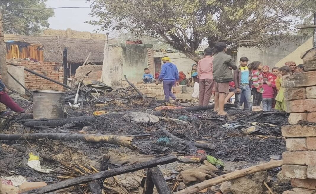 अचानक आग से दो झोपड़ियां राख, ग्रामीणों की सूझबूझ से पशु सुरक्षित