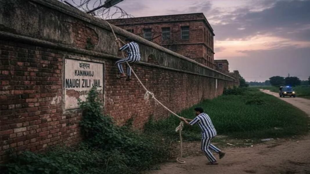 कन्नौज: कन्नौज जिला जेल (Kannauj district jail) से देर रात दो कैदी (prisoners) फरार हो गए। बताया जा रहा है कि उन्होंने जेल परिसर में चल रही नव वर्ष की पार्टी का फायदा उठाया। अधिकारियों ने सोमवार को पुष्टि की कि कैदियों ने कथित तौर पर कई कंबलों को एक साथ बांधकर रस्सी बनाई और 22 फीट से अधिक ऊंची जेल की चारदीवारी फांद ली।