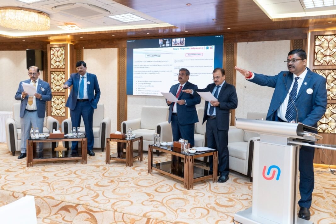 बैंक के प्रबंध निदेशक एवं सीईओ श्री आशीष पाण्डेय द्वारा आज बैंक के केंद्रीय कार्यालय में कार्यपालक निदेशकों, मुख्य सतर्कता अधिकारी और वरिष्ठ कार्यपालकों की उपस्थिति में सत्यनिष्ठा शपथ ली गई और ईमानदारी एवं सत्यनिष्ठा के उच्चतम मानकों को बनाए रखने की प्रतिबद्धता व्यक्त की गई। देश भर के सभी क्षेत्रीय कार्यपालक भी शपथ लेने के लिए वर्चुअल माध्यम से जुड़े।