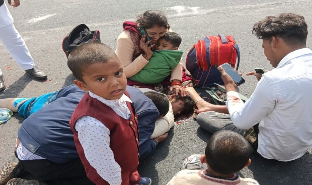 उन्नाव: ट्रक ने बाइक को मारी टक्कर, पति और बच्चों के सामने महिला की मौत