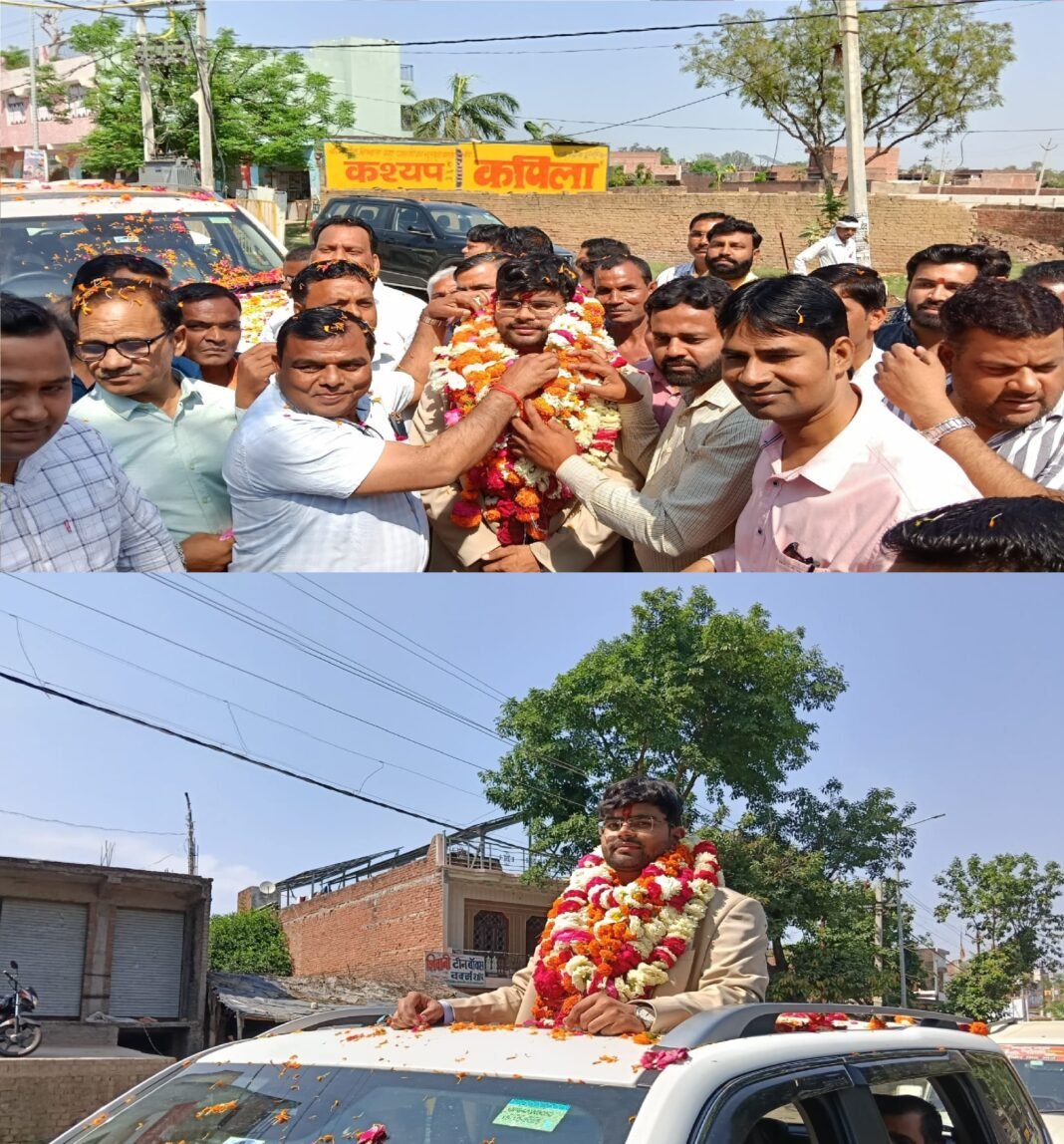उत्कर्ष यादव के नगर आगमन पर स्थानीय निवासियों और परिजनों ने उनका जोरदार अभिनंदन किया। ढोल-नगाड़ों की थाप और पुष्प वर्षा के बीच नगर के मुख्य बाजार मार्ग पर एक भव्य स्वागत यात्रा निकाली गई।