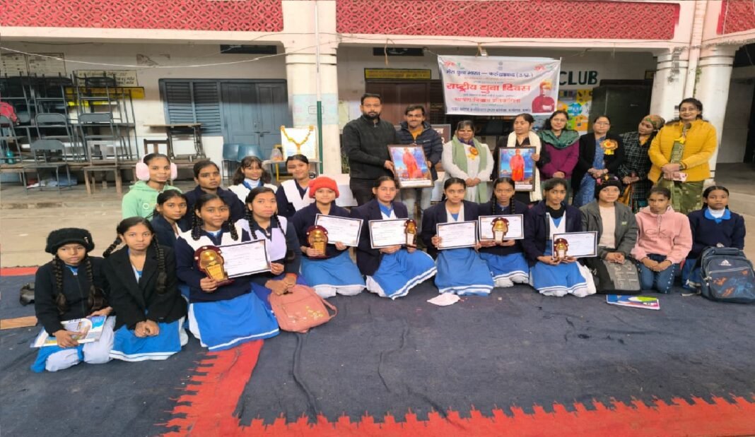 फर्रुखाबाद: राष्ट्रीय युवा दिवस (National Youth Day) के अवसर पर माय भारत के द्वारा जिला युवा अधिकारी (District Youth Officer) शिखर रस्तोगी के नेतृत्व में निबंध और भाषण प्रतियोगिता का आयोजन किया गया। इस अवसर पर स्वामी विवेकानन्द की फोटो पर माल्यार्पण व दीप प्रज्ज्वलन कर कार्यक्रम का भव्य शुभारम्भ हुआ। मुख्य अतिथि के रूप में समाज सेविका गूंजा जैन और सुमन त्रिपाठी मौजूद रहीं।