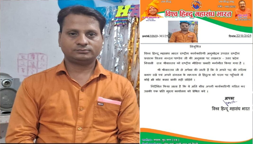 विश्व हिन्दू महासंघ भारत में राज श्रीवास्तव को राष्ट्रीय मीडिया प्रभारी किया गया मनोनीत