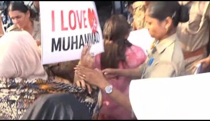लखनऊ शुक्रवार को बड़ा राजनीतिक और सामाजिक घटनाक्रम हुआ। समाजवादी पार्टी की नेत्री सुमैया राणा के नेतृत्व में बड़ी संख्या में मुस्लिम महिलाएं विधानसभा के बाहर पहुंचीं और जोरदार प्रदर्शन किया। महिलाओं के हाथों में “I Love मोहम्मद” लिखी तख्तियां थीं और वे नारेबाजी करते हुए सरकार की नीतियों का विरोध कर रही थीं।