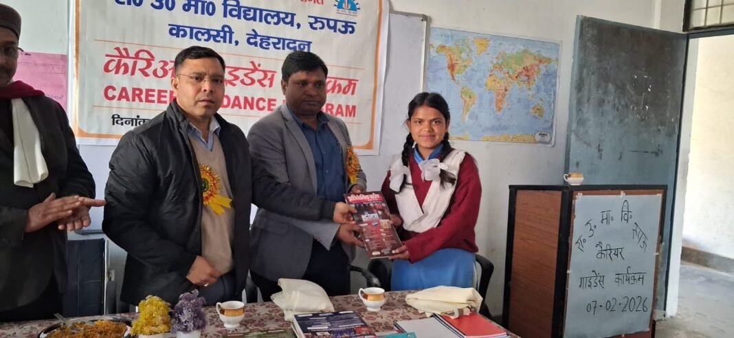 देहरादून।राजकीय उच्चतर माध्यमिक विद्यालय रूपऊ में आयोजित कैरियर कार्यक्रम के अंतर्गत छात्र-छात्राओं को भविष्य की दिशा दिखाने के उद्देश्य से एक प्रेरणादायक मार्गदर्शन सत्र का आयोजन किया गया। कार्यक्रम के मुख्य मार्गदर्शक पीसीएस अधिकारी एवं स्टेट जीएसटी डिप्टी कमिश्नर विजय कुमार ने विद्यार्थियों को संबोधित करते हुए कहा कि यदि शिक्षार्थी स्वयं को अनुशासन के ढांचे में ढालकर निरंतर कठिन परिश्रम करें, तो सफलता निश्चित रूप से उनके कदम चूमती है।