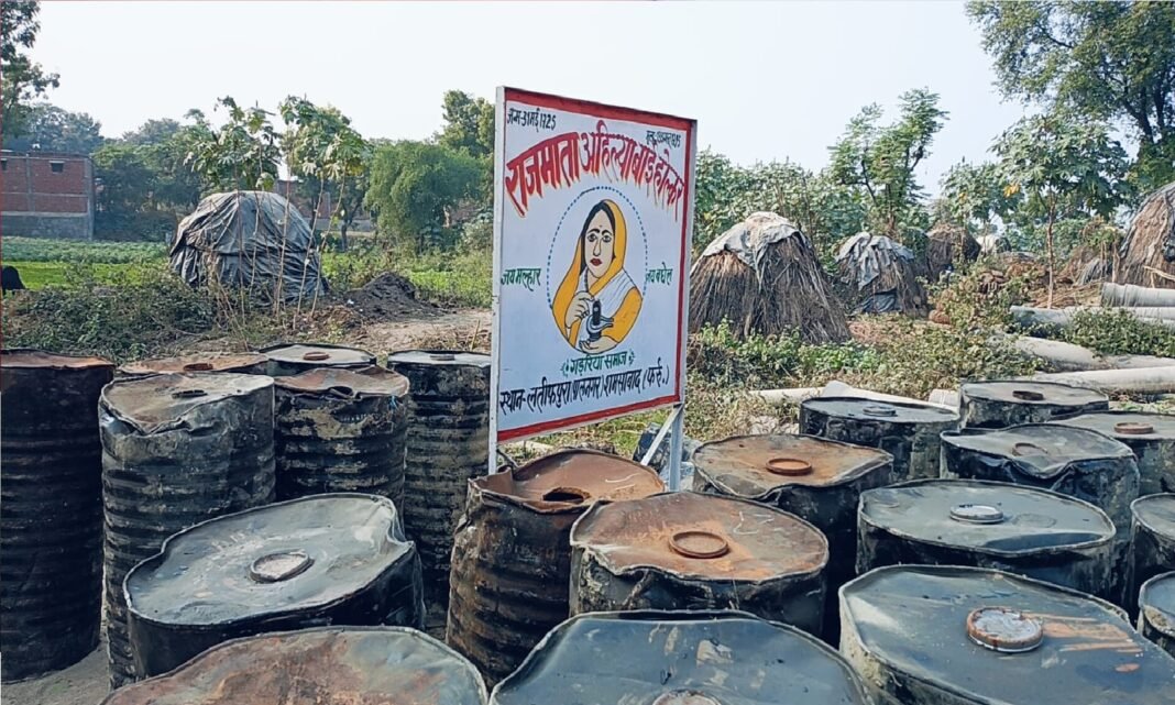 धार्मिक स्थल के सामने डामर के ड्रम रखे जाने पर ग्रामीणों में भारी आक्रोश, प्रशासन से कार्रवाई की मांग