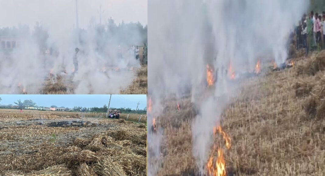 एचटी लाइन का तार गिरते ही धधकी गेहूं की फसल, मजदूरों ने भागकर बचाई जान